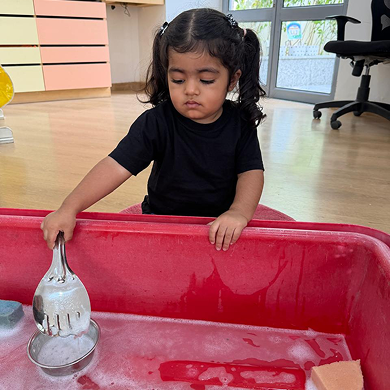 Play is part of the curriculum. Through sensory activities, children develop problem-solving skills in joyful, natural ways.